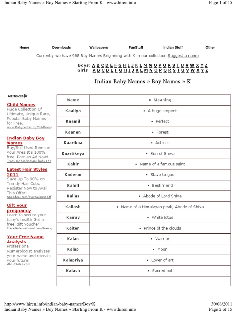 Indian Baby Boy Names Starting With K Cacompadda