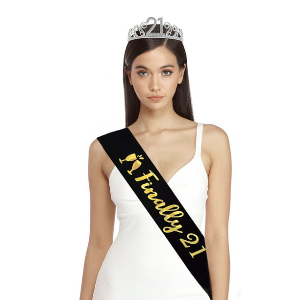 Laribbons 21st Birthday Crystal Tiara And Sash Finally 21 Black Satin Sash Birthday Crown For Birthday Party Supplies And Decorations Tiara And Sash Walmart Com